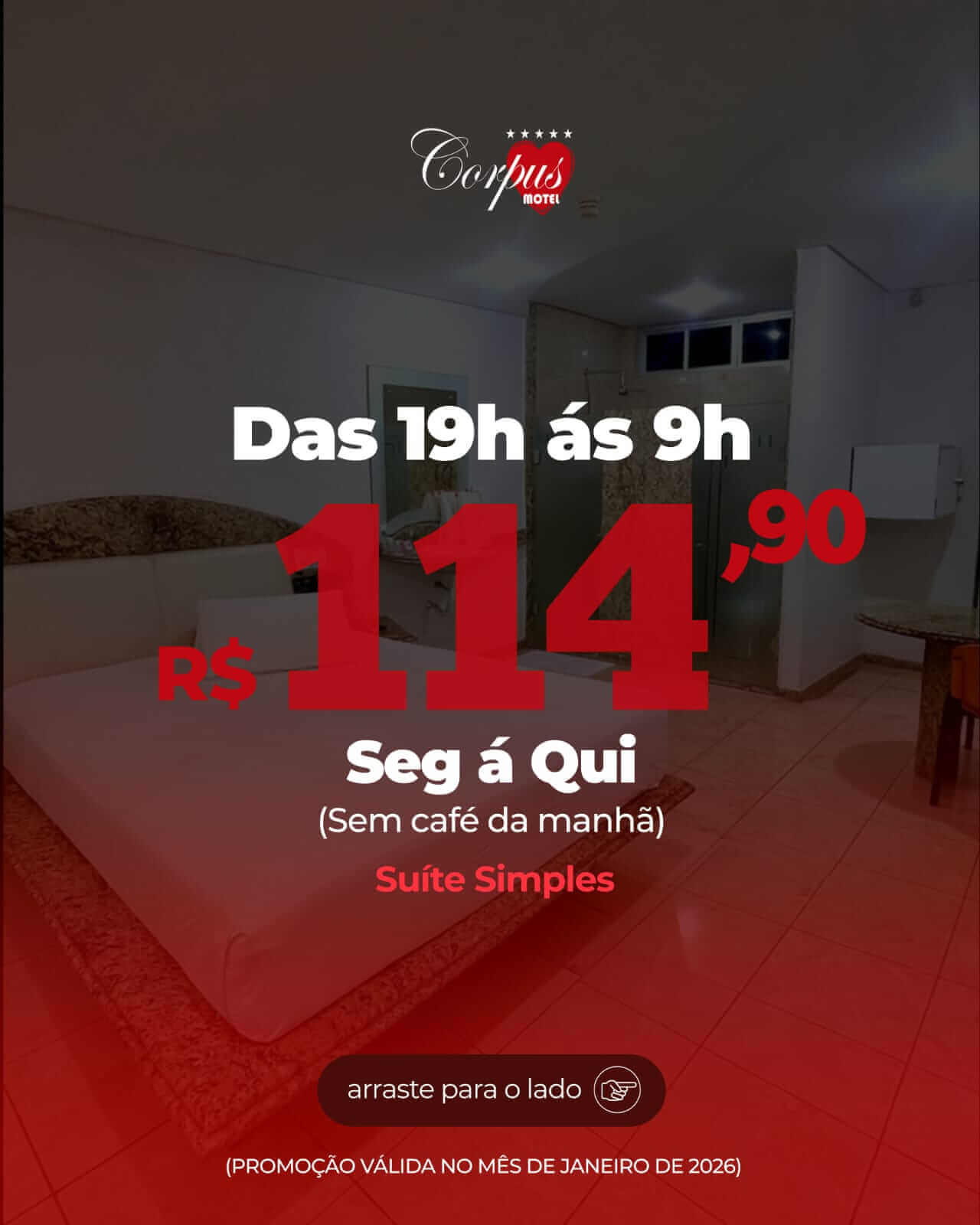 Pague 2 e fique 4 horas. Das 20hs até 00:00hs de segunda a quinta.suite Corpus.